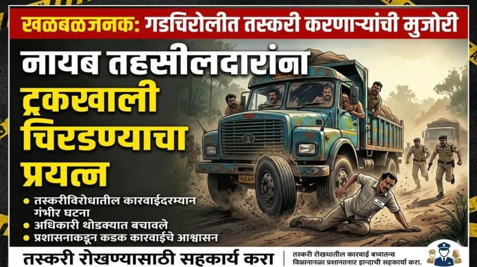 गडचिरोली जिल्ह्यात अवैध गौण खनिज तस्करी करणाऱ्यांचे धाडस इतके वाढले आहे की, आता त्यांनी थेट महसूल अधिकाऱ्यांच्या अंगावर वाहन घालून त्यांना जीवे मारण्याचा प्रयत्न केला आहे. ५ एप्रिल रोजी घडलेल्या या धक्कादायक घटनेत नायब तहसीलदारांना लक्ष्य करण्यात आले. विशेष म्हणजे, इतकी गंभीर घटना घडूनही रीतसर तक्रार नोंदवण्यासाठी प्रशासनाला ११ दिवसांचा विलंब लागल्याने आश्चर्य व्यक्त केले जात आहे.